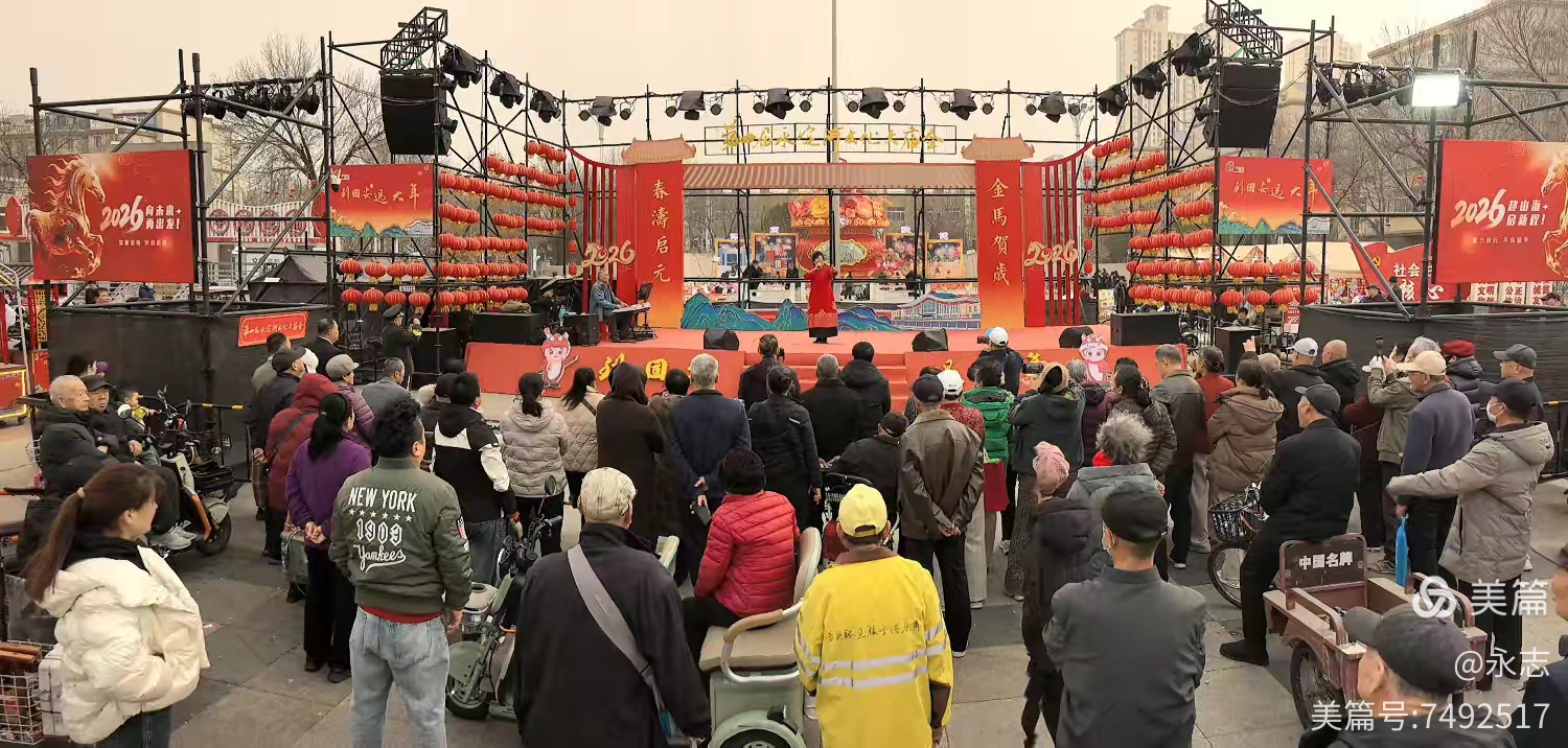 记录者(中国)作者:李永志-正月初六,固安县人民广场百姓大舞台锣鼓铿锵,歌声嘹亮。由固安县文联主办、固安县民间文艺家协会承办的固安永定河大庙会文艺演出在这里隆重举行,为节日增添了浓厚的文化氛围,吸引了众多赶庙会的群众驻足观看。